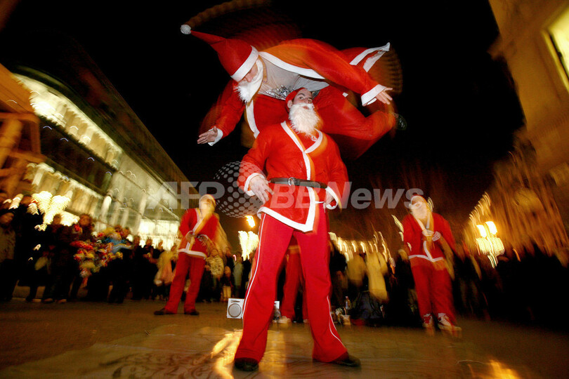 ニュース ライフ 聖ニコラスの日にサンタたちがストリートパフォーマンス 2007年12月7日 16:43 発信地:ブダペスト/ハンガリー [ ヨーロッパ ハンガリー ] このニュースをシェア ‹ › ❮ 1/3 ❯ 2007年12月6日、ハンガリーの首都ブダペスト(Budapest)にあるヴェレシュマルティ(Vorosmarty)広場で、サンタクロースの格好でパフォーマンスを行うストリートダンサーたち。(c)AFP/BALINT PORNECZI 画像作成中 ! 【12月7日 AFP】聖ニコラスの日(St. Nicholas' Day)の6日、ハンガリーの首都ブダペスト(Budapest)では、ストリートダンサーたちがサンタクロースの格好でパフォーマンスを行った。(c)AFP ライフ 一覧へ> メディア・報道関係・法人の方向け 写真・動画 購入のお問合せ>