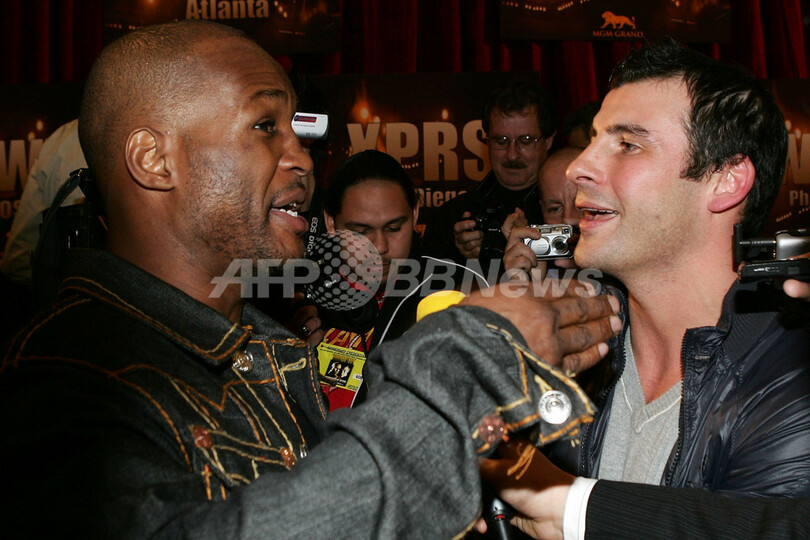 【12月8日 AFP】ボクシングWBC世界ウェルター級タイトルマッチ、王者フロイド・メイウェザー・ジュニア(Floyd Mayweather Jr.、米国)対挑戦者リッキー・ハットン(Ricky Hatton、英国)戦を現地8日に控えた7日、メイウェザー・ジュニアとハットンはMGMグランドガーデン・アリーナ(MGM Grand Garden Arena)で行われた公開計量に臨み、ハットンは145ポンド(約65.7キログラム)で通過し、一方のメイウェザー・ジュニアは規定重量の147ポンド(66.6キログラム)で通過した。(c)AFP