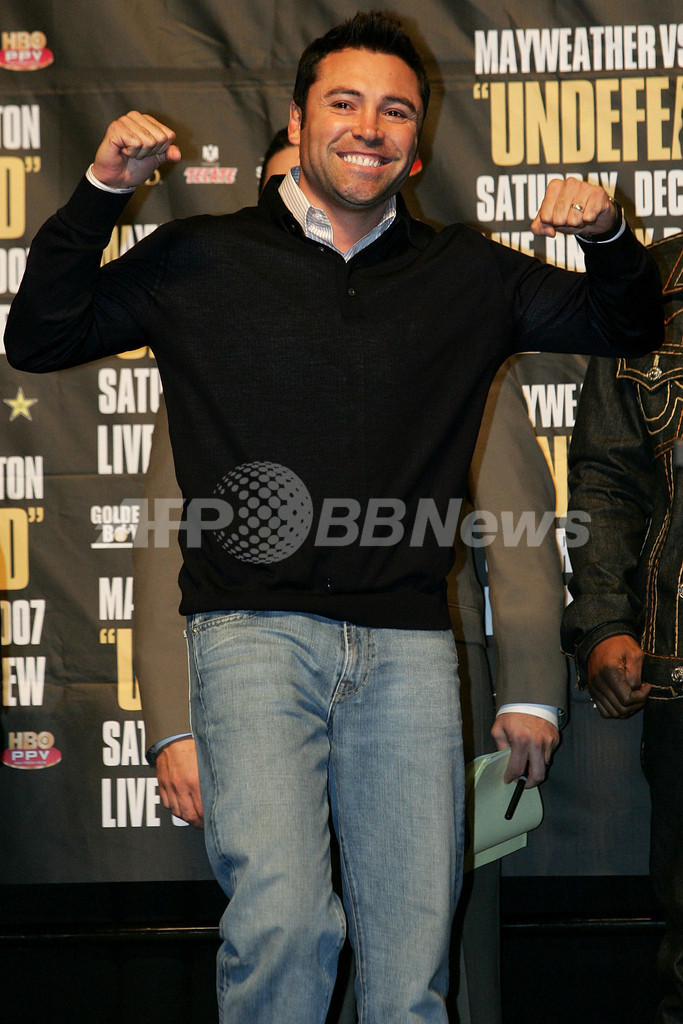 【12月8日 AFP】ボクシングWBC世界ウェルター級タイトルマッチ、王者フロイド・メイウェザー・ジュニア(Floyd Mayweather Jr.、米国)対挑戦者リッキー・ハットン(Ricky Hatton、英国)戦を現地8日に控えた7日、メイウェザー・ジュニアとハットンはMGMグランドガーデン・アリーナ(MGM Grand Garden Arena)で行われた公開計量に臨み、ハットンは145ポンド(約65.7キログラム)で通過し、一方のメイウェザー・ジュニアは規定重量の147ポンド(66.6キログラム)で通過した。(c)AFP