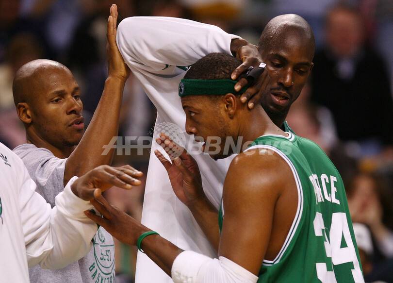スポーツ バスケットボール セルティックス ラプターズを降しホーム負け無しの10連勝 2007年12月8日 16:57 発信地:ボストン/米国 [ 北米 米国 ] このニュースをシェア ‹ › ❮ 2/10 ❯ ポール・ピアース(%%Paul Pierce%%、手前)を出迎えるセルティックスのレイ・アレン(%%Ray Allen%%、左)とケビン・ガーネット(%%Kevin Garnett%%)。(c)AFP/Getty Images Elsa 画像作成中 ! 【12月8日 AFP】07-08NBA、ボストン・セルティックス(Boston Celtics)vsトロント・ラプターズ(Toronto Raptors)。試合はセルティックスが112-84でラプターズを降し、ホーム負け無しの10連勝を飾った。(c)AFP/Getty Images バスケットボール 一覧へ> メディア・報道関係・法人の方向け 写真・動画 購入のお問合せ>