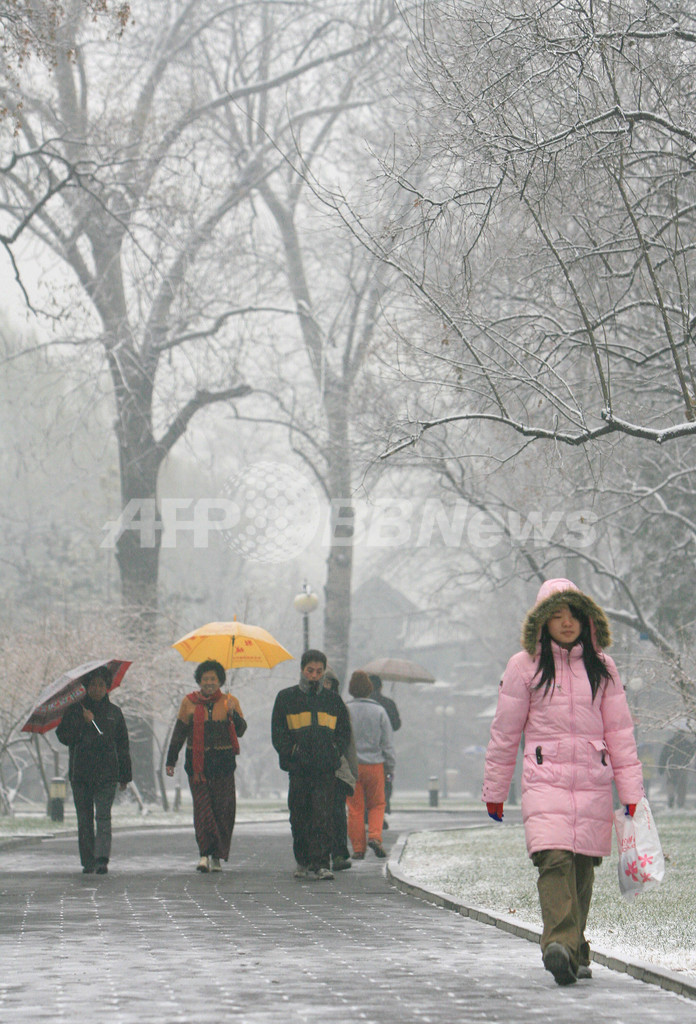 ニュース 環境・科学 北京で大雪、一面の銀世界に 2007年12月13日 9:23 発信地:北京/中国 [ 中国・台湾 中国 ] このニュースをシェア ‹ › ❮ 2/5 ❯ 2007年12月10日、中国の首都・北京(Beijing)で大雪の中を歩く人たち。(c)AFP/TEH ENG KOON 画像作成中 ! 【12月13日 AFP】中国の首都北京(Beijing)では10日、大雪が降り、並木や建物、道路が雪で覆われ、一面の銀世界となった。(c)AFP 環境・科学 一覧へ> メディア・報道関係・法人の方向け 写真・動画 購入のお問合せ>