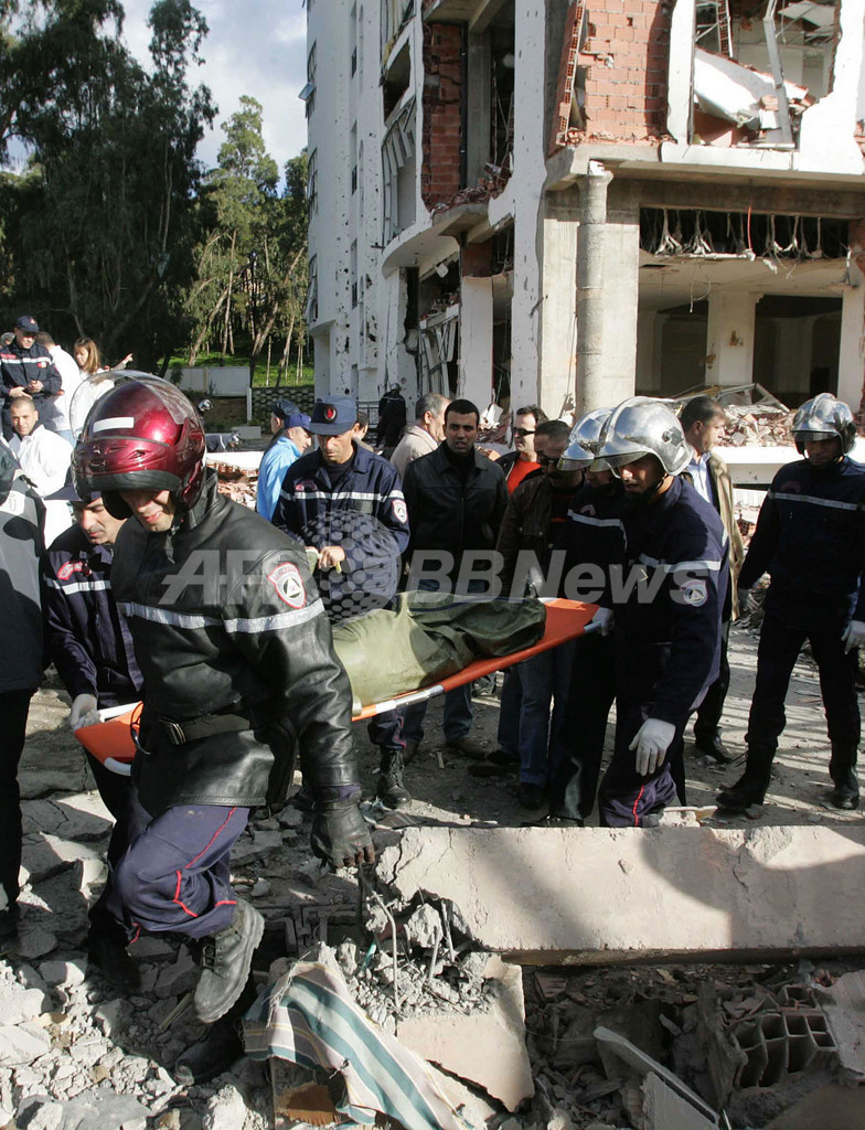 【12月13日 AFP】11日連続爆破テロが起きたアルジェリアの首都アルジェ(Algiers)の爆破現場では翌12日も、救急隊員らによる生存者の救出活動が続けられている。このテロで、国連(UN)職員11人を含む数十人が死亡したとみられており、国際テロ組織アルカイダ(Al-Qaeda)系のイスラム過激派組織が犯行声明を出している。