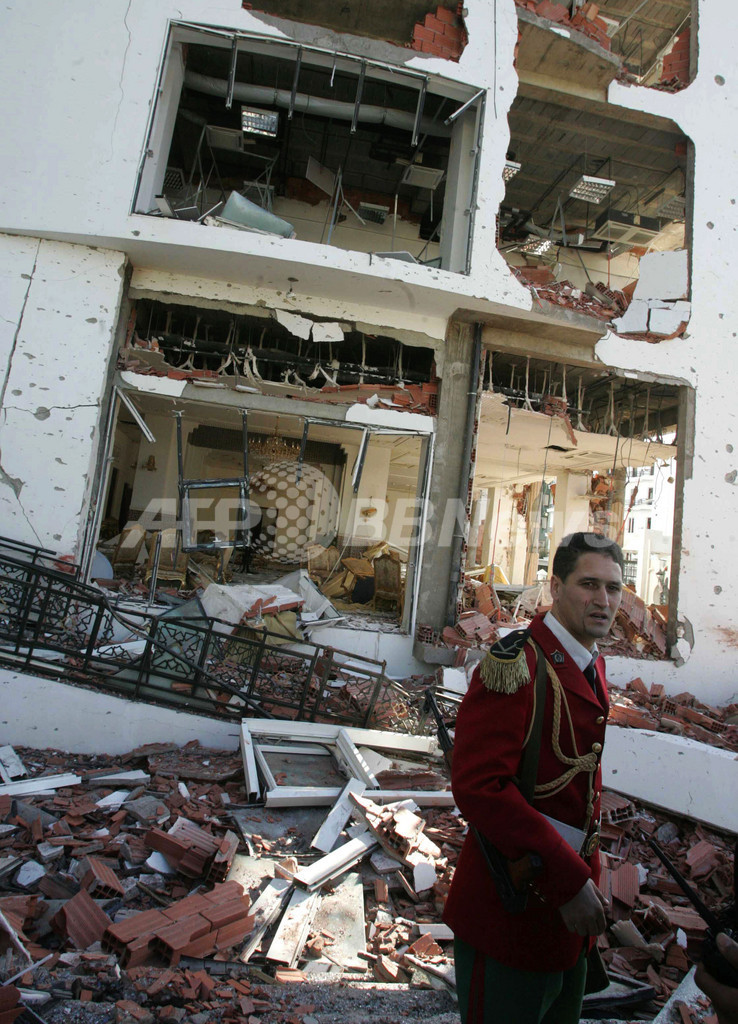 この爆発の数分前には、最高裁判所や憲法裁判所のビル近くでも爆弾を積んだ車両が爆発し、広範囲にわたって被害が出た。この車両付近を走行中のバスに乗っていた学生らが犠牲になっている。爆発の際、憲法裁判所の2階にいた弁護士は「まるで地震のようだった」と話した。(c)AFP/Hassen Zenati