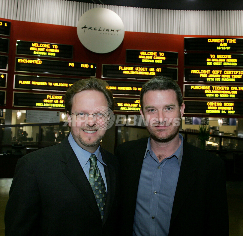 2007年12月12日、新しくオープンしたアークライト・シャーマンオークス(ArcLight Sherman Oaks)で行われたアメリカ映画協会(American Film Institute、AFI)主催によるリボンカット記念式典に出席した、AFI会長の%%Bob Gazzale%%氏(左)と%%Christian Gains%%氏。(c)AFP/Getty Images Noel Vasquez