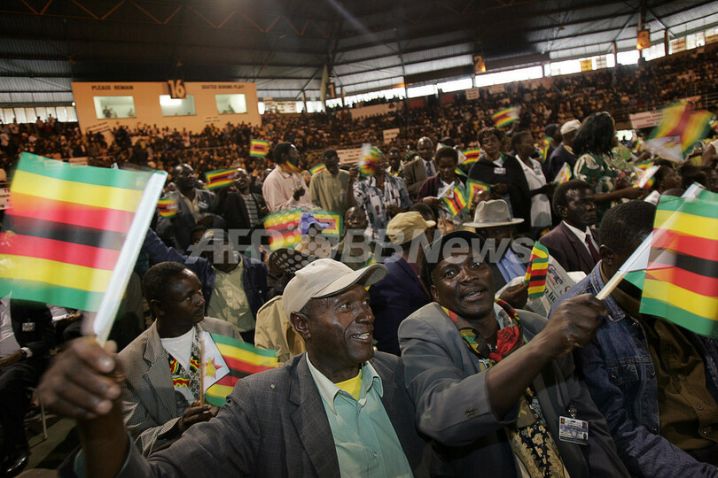 ニュース 政治・経済 ジンバブエ与党、ムガベ大統領を次期大統領選の候補として承認 2007年12月14日 7:17 発信地:ハラレ/ジンバブエ [ アフリカ ジンバブエ ] このニュースをシェア ‹ › ❮ 3/6 ❯ 2007年12月13日、ジンバブエの首都ハラレ(Harare)で行われた与党ジンバブエ・アフリカ民族同盟愛国戦線(ZANU-PF)の党大会で、ロバート・ムガベ(Robert Mugabe)大統領の演説を聞く支持者。(c)AFP/ALEXANDER JOE 画像作成中 ! 【12月14日 AFP】ジンバブエの与党ジンバブエ・アフリカ民族同盟愛国戦線(ZANU-PF)は13日、次期大統領選挙の候補として、同党党首で現職のロバート・ムガベ(Robert Mugabe)大統領(83)を承認した。ムガベ大統領は1987年から大統領の座についており、再選されれば6期目となる。(c)AFP 政治・経済 一覧へ> メディア・報道関係・法人の方向け 写真・動画 購入のお問合せ>