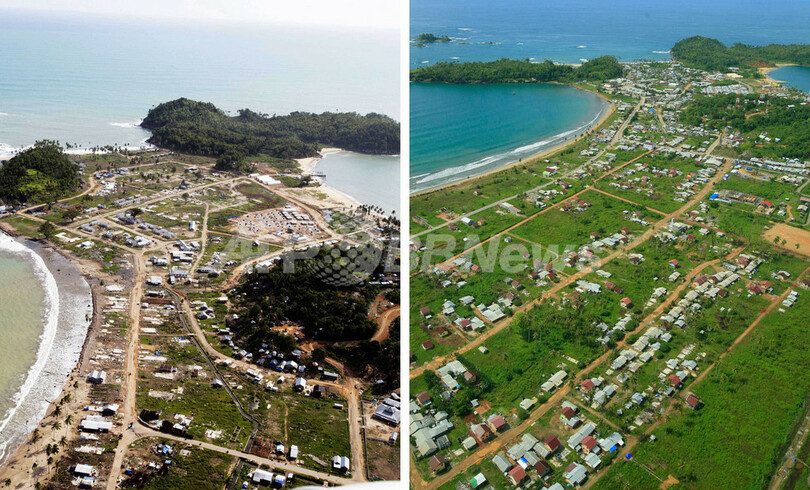 ニュース 政治・経済 スマトラ沖地震・津波から3年、10万戸目の復興住宅を住民に引渡し 2007年12月15日 12:55 発信地:ジャカルタ/インドネシア [ アジア・オセアニア インドネシア ] このニュースをシェア ‹ › ❮ 1/2 ❯ 2005年8月3日(左)、2007年12月14日(右)撮影の、インドネシアのアチェジャヤ(Aceh Jaya)のカラン(Calang)。(c)AFP/BRR/Arif Ariadi 画像作成中 ! 【12月15日 AFP】スマトラ沖地震・津波発生から3年を迎えるインドネシアのアチェジャヤ(Aceh Jaya)で14日、アチェ(Aceh)とニアス(Nias)島に建設された10万軒目の復興住宅を住民に引渡す式典が行われた。今回引き渡されたのは10万軒目を含めた138軒。同地は2004年の災害で壊滅的被害を被った。(c)AFP 政治・経済 一覧へ> メディア・報道関係・法人の方向け 写真・動画 購入のお問合せ>