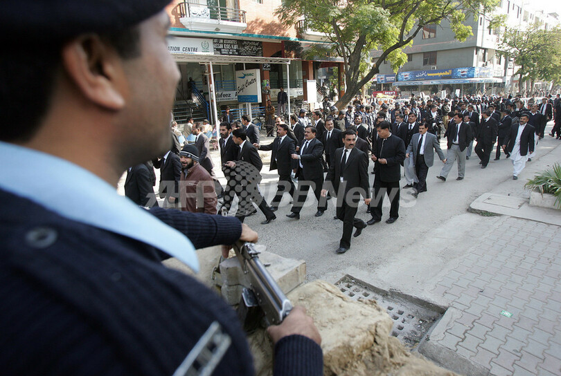 11月3日に非常事態宣言が発令されて以来、憲法は停止され、数千人が当局に拘束され、大統領に非協力的な裁判官は解任され、メディアには新たに厳しい報道規制が課せられた。(c)AFP/Rana Jawad