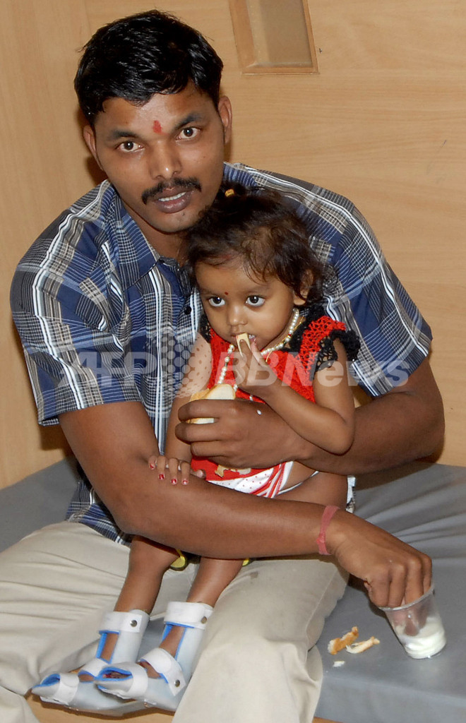 【12月15日 AFP】生まれつき8本の手足があったため分離手術を受けたインドの少女、ラクシュミ(Lakshmi)ちゃん(2)が15日、両親と兄に付き添われて退院した。