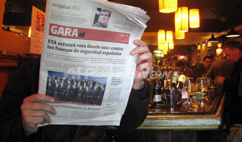 ニュース 戦争・紛争 スペイン人警官射殺事件、バスク祖国と自由(ETA)が犯行声明 2007年12月16日 12:21 発信地:マドリード/スペイン [ ヨーロッパ スペイン ] このニュースをシェア ‹ › ❮ 1/4 ❯ 2007年12月15日、バスク(Basque)地方の村Llodioで、ETAによる犯行声明が掲載されたGara紙を読む男性。(c)AFP 画像作成中 ! 【12月16日 AFP】フランス南西部でスペイン人警官2人が12月1日に射殺された事件で、スペイン東部バスク(Basque)地方の分離独立を求める非合法組織「バスク祖国と自由(ETA)」が14日、犯行声明を出した。声明は今後も攻撃を続けるとしている。ETAと関係が深いとされるGara紙が伝えた。(c)AFP 戦争・紛争 一覧へ> メディア・報道関係・法人の方向け 写真・動画 購入のお問合せ>