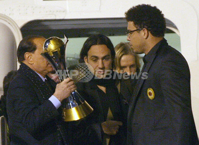 スポーツ サッカー 07クラブW杯制したミランが凱旋帰国 2007年12月18日 10:04 発信地:ミラノ/イタリア [ ヨーロッパ イタリア ] このニュースをシェア ‹ › ❮ 6/6 ❯ ミラノ・マルペンサ国際空港(Milan Malpensa International Airport)に到着しシルビオ・ベルルスコーニ(%%Silvio Berlusconi%%)会長(左)と言葉を交わすロナウド(%%Ronaldo%%)。(c)AFP/GIUSEPPE CACACE 画像作成中 ! 【12月18日 AFP】07クラブW杯(FIFA Club World Cup Japan 2007)の決勝でボカ・ジュニアーズ(Boca Juniors)を4-2で降し、クラブ世界一の栄冠に輝いたACミラン(AC Milan)は現地17日、ミラノ・マルペンサ国際空港(Milan Malpensa International Airport)に到着し凱旋帰国を果たした。(c)AFP サッカー 一覧へ> メディア・報道関係・法人の方向け 写真・動画 購入のお問合せ>