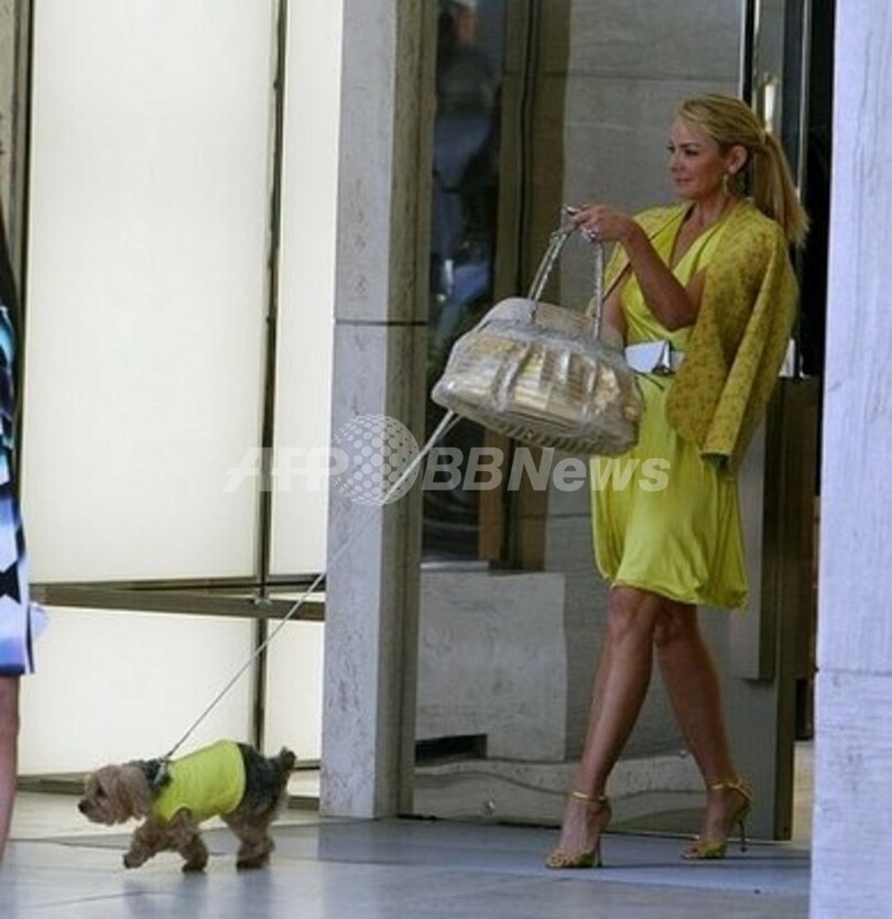 ロサンゼルスで行われた撮影では、キム・キャトラル(Kim Cattrall)演じるサマンサが犬とのペアルックをお披露目。サマンサは「ナンシー・ゴンザレス(Nancy Gonzalez)」のゴールドのバッグを、愛犬は特別に製作された同ブランドの首輪とリードを付けた。服ももちろんお揃いのイエロー。映画は米国で08年5月30日より公開予定だ。(c)Fashion Week Daily/MODE PRESS