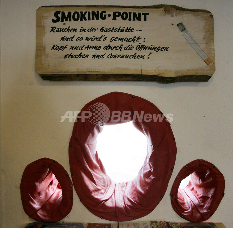 ニュース ライフ こぼれ話 防寒対策は万全! ドイツ北部にユニークな喫煙所登場 2007年12月20日 9:13 発信地:ゴスラー/ドイツ [ ヨーロッパ ドイツ ] このニュースをシェア ‹ › ❮ 2/5 ❯ 2007年12月19日、ドイツ北西部ニーダーザクセン(Lower Saxony)州ゴスラー(Goslar)のレストラン「Malermeister Turm」に設けられたユニークな「喫煙所」。(c)AFP/DDP/NIGEL TREBLIN 画像作成中 ! 【12月20日 AFP】ドイツ北西部ニーダーザクセン(Lower Saxony)州でレストランでの喫煙を禁じる法律が施行されたのを受けて、同州ゴスラー(Goslar)にあるレストラン「Malermeister Turm」の経営者は、ユニークな「喫煙所」を設置した。レストランの壁面に顔、両手が出せる大きさの3つの穴を開け、そこから必要最小限の部分だけを外に出してタバコを吸うことができるというものだ。(c)AFP ライフ 一覧へ> メディア・報道関係・法人の方向け 写真・動画 購入のお問合せ>