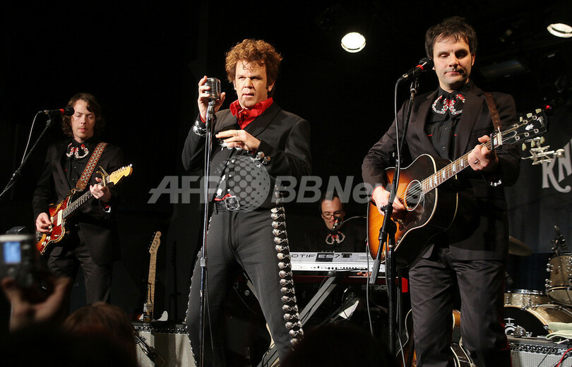 【12月20日 AFP】ニューヨークにあるクラブ、ニッティング・ファクトリー(The Knitting Factory)で19日、映画『Walk Hard: The Dewey Cox Story』に出演する俳優ジョン・C・ライリー(John C. Reilly)が、同映画で演じるDewey Coxとしてパフォーマンスを披露した。(c)AFP/Getty Images