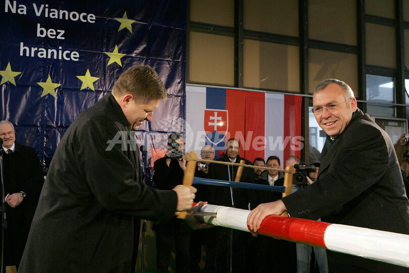 これに先立ち、スロバキアとオーストリア国境のBerg-Petrzalka国境通過点で加盟国拡大の記念式典が行われ、オーストリアのアルフレッド・グーゼンバウアー(Alfred Gusenbauer)首相とスロバキアのロベルト・フィツォ(Robert Fico)首相は、国境に置かれた障壁を切り落として「テープカット」を行った。