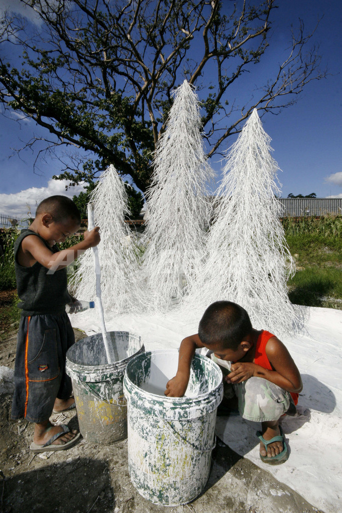 ニュース ライフ カトリック大国フィリピン、世界最長のクリスマスシーズンに突入 2007年12月21日 17:42 発信地:マニラ/フィリピン [ アジア・オセアニア フィリピン ] このニュースをシェア ‹ › ❮ 3/3 ❯ 2007年12月20日、フィリピンの首都マニラ(Manila)でマングローブを乾燥させたクリスマスツリーを白ペンキで塗る子どもたち。(c)AFP/LUIS LIWANAG 画像作成中 ! 【12月21日 AFP】フィリピンは国民8700万人の80%以上がカトリック教徒という、アジア屈指のカトリック大国だ。また、正式には12月16日の夜明けのミサから始まるクリスマスシーズンは世界で最も長い。首都マニラ(Manila)では20日、乾燥させたマングローブで作ったクリスマスツリーを白ペンキで着色する子どもたちの姿が見られた。このツリーは1本1000ペソ(約2700円)で販売される。(c)AFP ライフ 一覧へ> メディア・報道関係・法人の方向け 写真・動画 購入のお問合せ>