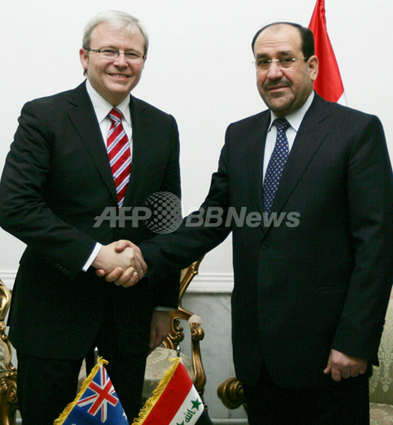 ラッド首相のバグダッド訪問は今回で2回目となる。同首相は前月行われた総選挙の公約として、イラク南部に英国軍とともに駐留している550人規模の豪軍部隊の撤退を掲げていた。(c)AFP