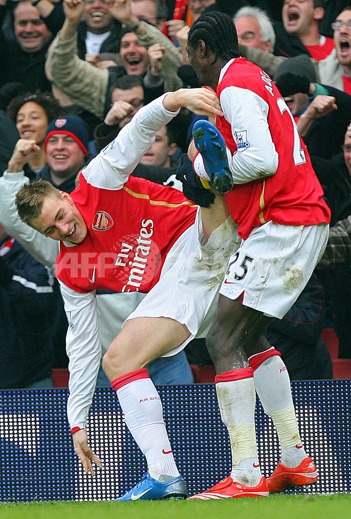 スポーツ サッカー アーセナル トッテナムとのノースロンドンダービーを制す 2007年12月23日 1:07 発信地:ロンドン/英国 [ ヨーロッパ 英国 ] このニュースをシェア ‹ › ❮ 1/19 ❯ 後半30分に決勝点を決めたニクラス・ベントナー(%%Nicklas Bendtner%%、左)を祝福するアーセナルのエマヌエル・アデバヨール(%%Emmanuel Adebayor%%)。(c)AFP/CARL DE SOUZA 画像作成中 ! 【12月23日 AFP】サッカー、07-08イングランド・プレミアリーグ・第18節、アーセナル(Arsenal)vsトッテナム・ホットスパー(Tottenham Hotspur)。試合はアーセナルが2-1でトッテナムとのノースロンドンダービーを制し、勝ち点を43に伸ばして首位をキープした。(c)AFP サッカー 一覧へ> メディア・報道関係・法人の方向け 写真・動画 購入のお問合せ>