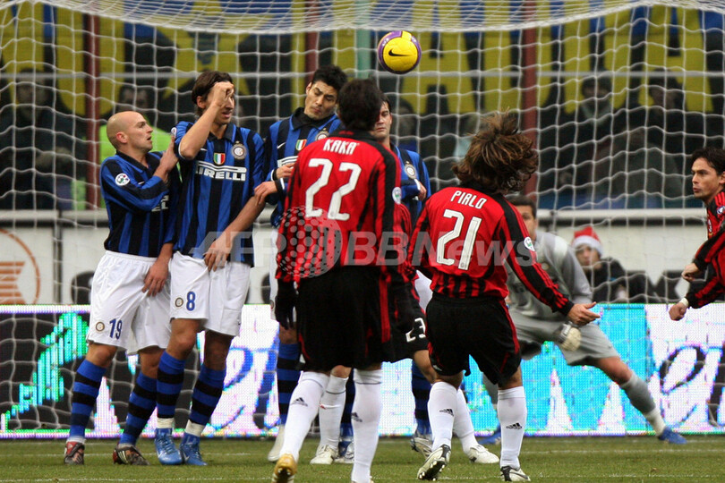 試合はインテルが優位に進めるが、前半18分にミランはアンドレア・ピルロ(Andrea Pirlo)がフリーキックをゴール左上に直接叩き込んで先制点を奪った。