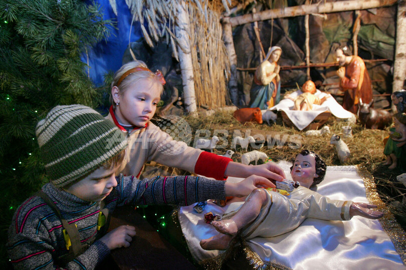 ニュース ライフ ベラルーシのカトリック寺院で厳かなクリスマス式典 2007年12月25日 10:41 発信地:ミンスク/ベラルーシ [ ロシア・CIS ベラルーシ ] このニュースをシェア ‹ › ❮ 4/4 ❯ 2007年12月24日、ベラルーシ・ミンスク(Minsk)のカトリック寺院で宗教的展示の上にお菓子を置く子どもたち。(c)AFP/VIKTOR DRACHEV 画像作成中 ! 【12月25日AFP】ベラルーシの首都ミンスク(Minsk)のカトリック寺院で24日、クリスマス式典が行われ、子どもたちがろうそくをともしたりお菓子を供えるなど、厳かにクリスマスが祝われた。(c)AFP ライフ 一覧へ> メディア・報道関係・法人の方向け 写真・動画 購入のお問合せ>
