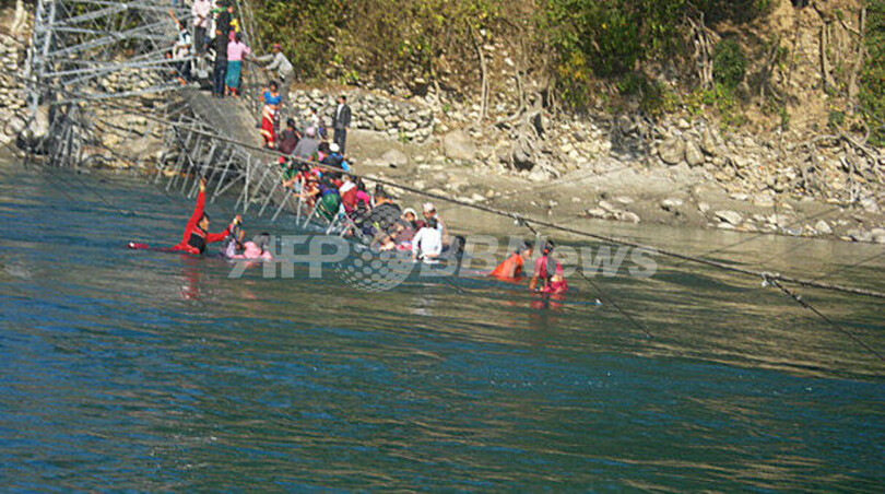 事故が起きたのは、首都カトマンズ(Kathmandu)西方380キロにあるベリ川の渓谷に架かる橋で、当時、24日に始まった満月を祝う宗教関連式典に向かう地元住人約400人が橋を渡っていたという。