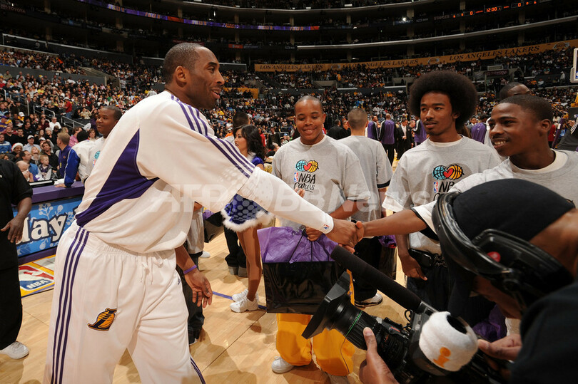 【12月26日 AFP】(写真追加)07-08NBA、ロサンゼルス・レイカーズ(Los Angeles Lakers)vsフェニックス・サンズ(Phoenix Suns)。試合はコービー・ブライアント(Kobe Bryant)がゲームハイとなる38得点を記録し、さらにアンドリュー・バイナム(Andrew Bynum)がキャリアハイとなる28得点に加え12リバウンドを記録しダブルダブルを活躍を見せたレイカーズが、122-115でサンズから勝利を収めた。1999年から毎年クリスマスに試合を行っているレイカーズは、クリスマスゲームの連敗を5で止めた。(c)AFP