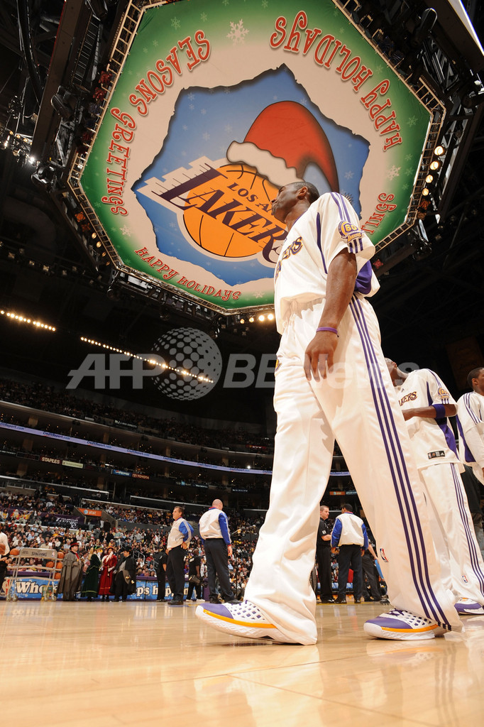 【12月26日 AFP】(写真追加)07-08NBA、ロサンゼルス・レイカーズ(Los Angeles Lakers)vsフェニックス・サンズ(Phoenix Suns)。試合はコービー・ブライアント(Kobe Bryant)がゲームハイとなる38得点を記録し、さらにアンドリュー・バイナム(Andrew Bynum)がキャリアハイとなる28得点に加え12リバウンドを記録しダブルダブルを活躍を見せたレイカーズが、122-115でサンズから勝利を収めた。1999年から毎年クリスマスに試合を行っているレイカーズは、クリスマスゲームの連敗を5で止めた。(c)AFP