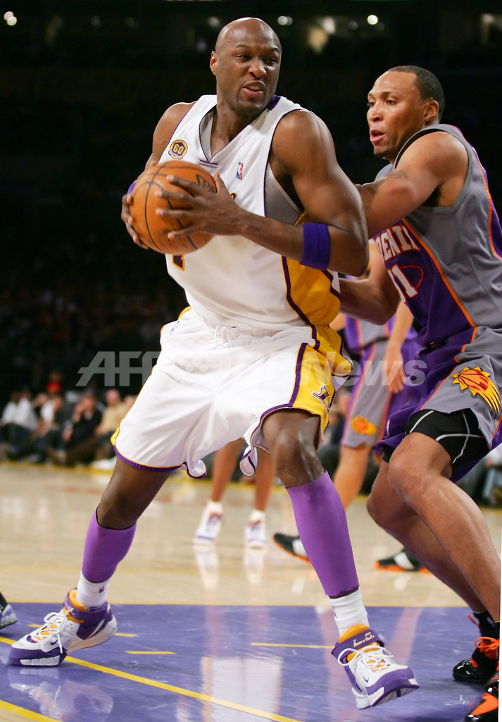 【12月26日 AFP】(写真追加)07-08NBA、ロサンゼルス・レイカーズ(Los Angeles Lakers)vsフェニックス・サンズ(Phoenix Suns)。試合はコービー・ブライアント(Kobe Bryant)がゲームハイとなる38得点を記録し、さらにアンドリュー・バイナム(Andrew Bynum)がキャリアハイとなる28得点に加え12リバウンドを記録しダブルダブルを活躍を見せたレイカーズが、122-115でサンズから勝利を収めた。1999年から毎年クリスマスに試合を行っているレイカーズは、クリスマスゲームの連敗を5で止めた。(c)AFP