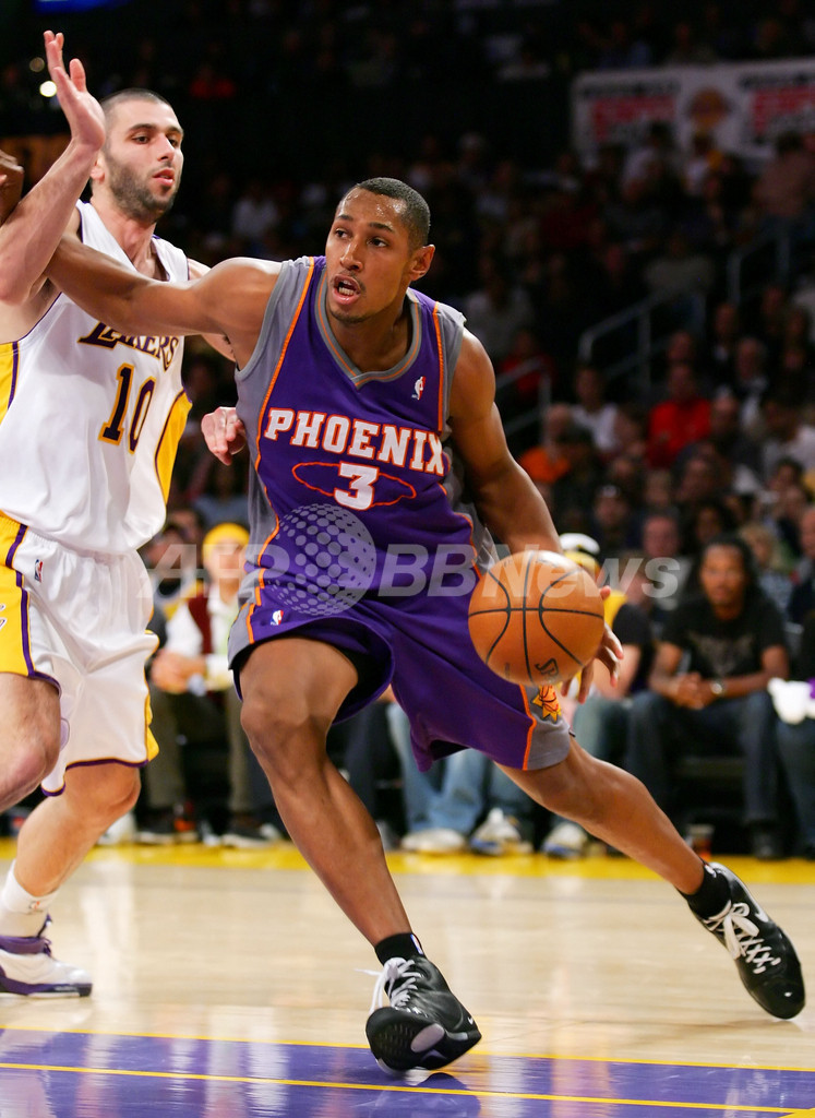 【12月26日 AFP】(写真追加)07-08NBA、ロサンゼルス・レイカーズ(Los Angeles Lakers)vsフェニックス・サンズ(Phoenix Suns)。試合はコービー・ブライアント(Kobe Bryant)がゲームハイとなる38得点を記録し、さらにアンドリュー・バイナム(Andrew Bynum)がキャリアハイとなる28得点に加え12リバウンドを記録しダブルダブルを活躍を見せたレイカーズが、122-115でサンズから勝利を収めた。1999年から毎年クリスマスに試合を行っているレイカーズは、クリスマスゲームの連敗を5で止めた。(c)AFP