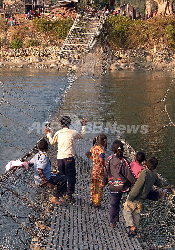 事故が起きたのは、首都カトマンズ(Kathmandu)西方380キロにあるベリ川の渓谷に架かる橋で、事故当時は前夜の満月を祝う祭りに向かう地元住人ら約400人が橋を渡る途中だったという。川は水深約25メートルで、冬の時期水かさの低くなった川を約100人が川岸まで泳いで助かったという。崩落した橋のロープにつかまって助かった人も数十人いたという。