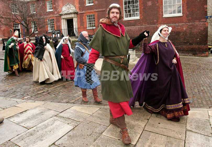 【12月28日 AFP】英ロンドン(London)のロンドン塔(Tower of London)で27日、中世のクリスマス・セレモニーを再現する恒例のイベントが始まった。「メリー・メディーバル・クリスマス(Merry Medieval Christmas)」と呼ばれるこのイベントは、イングランド王エドワード1世(King Edward I)統治時代の1284年のクリスマスの様子を再現するもの。エドワード1世やその側近、騎士などに扮(ふん)した俳優たちが塔内を練り歩いたり、イノシシを棒に縛り付けて運ぶなどの姿が訪問客を楽しませた。(c)AFP