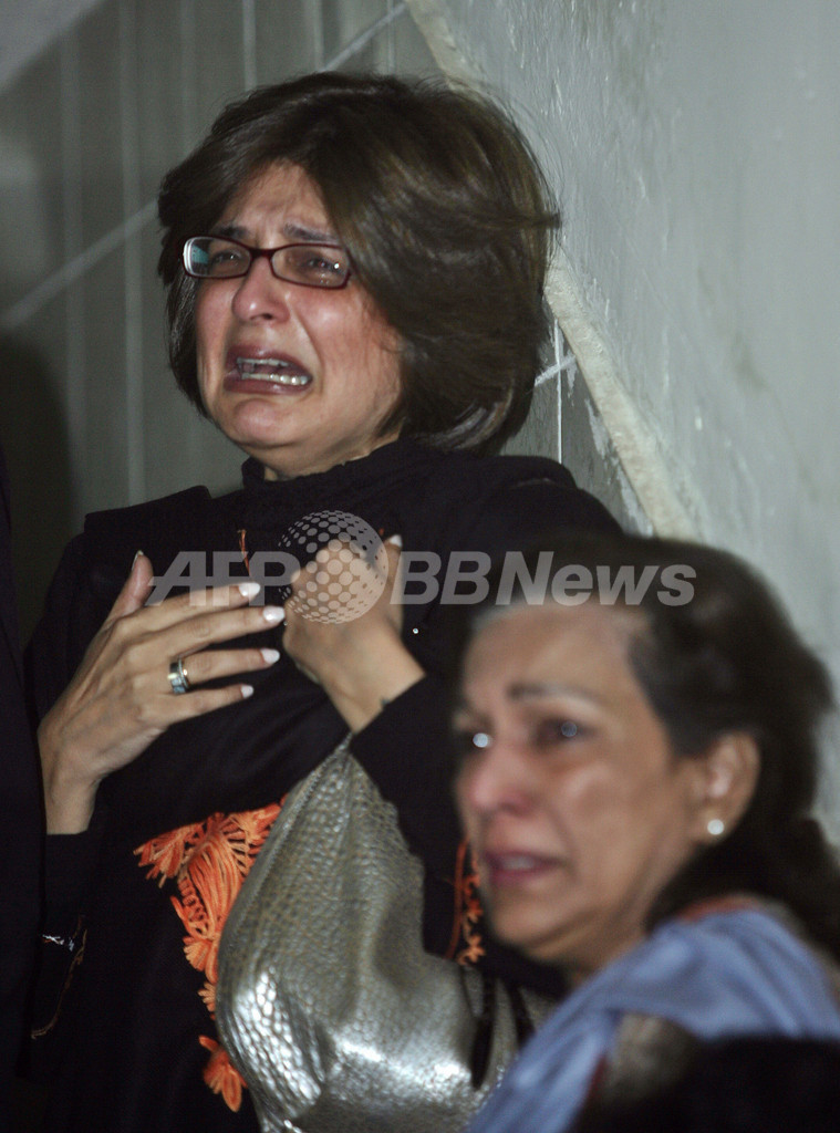 通りや沿道の建物を埋め尽くした数十万の群衆は、ブット元首相のひつぎが通り過ぎると、泣き声を上げたり胸を叩くなどして元首相の死を悼み、周囲は大きな悲しみに包まれた。(c)AFP