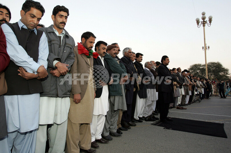 【12月28日 AFP】(12月29日 写真追加)パキスタンで前日に暗殺されたベナジル・ブット(Benazir Bhutto)元首相の葬儀が28日、故郷の南部シンド(Sindh)州で営まれ、遺体は同地のブット一族の墓地に埋葬された。国営テレビが伝えた。