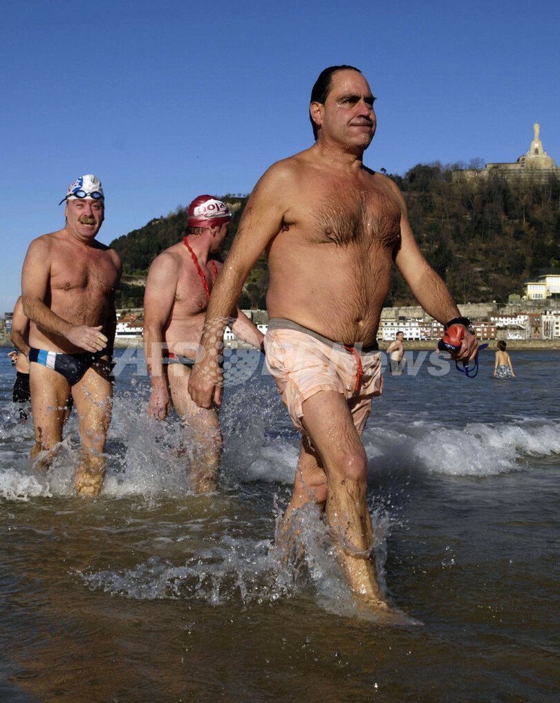 ニュース ライフ スペインでも、新年祝い寒中水泳大会 2008年1月2日 11:21 発信地:サンセバスチャン/スペイン [ ヨーロッパ スペイン ] このニュースをシェア ‹ › ❮ 3/4 ❯ 2008年1月1日、スペインのサンセバスチャン(San Sebastian)にあるコンチャ(Concha)海岸で、新年を祝う寒中水泳大会に参加する人々。(c)AFP/A. ARRIZURIETA 画像作成中 ! 【1月2日 AFP】スペインのサンセバスチャン(San Sebastian)にあるコンチャ(Concha)海岸で1日、新年を祝う寒中水泳大会が開かれ、大勢の人々が参加した。(c)AFP ライフ 一覧へ> メディア・報道関係・法人の方向け 写真・動画 購入のお問合せ>