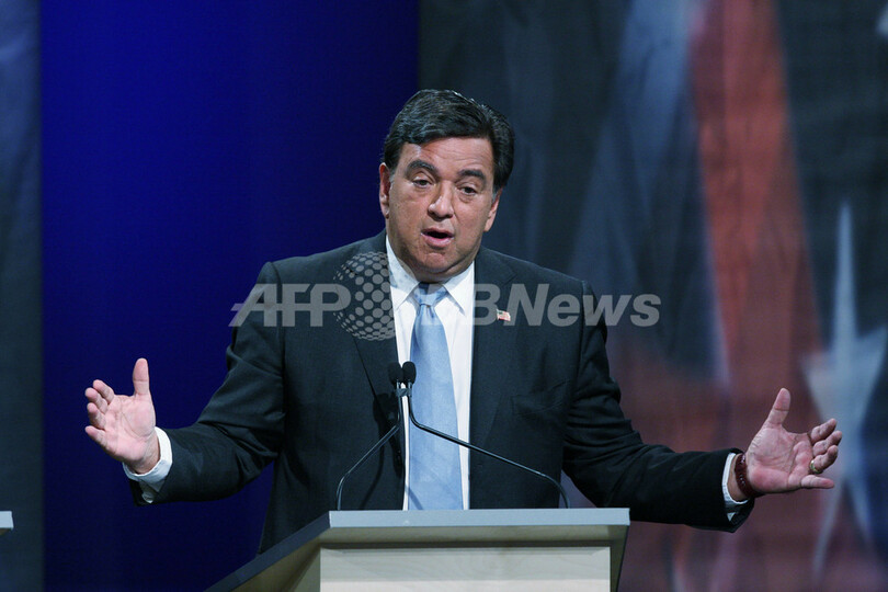 元アラスカ(Alaska)州選出の上院議員で、当選の望みは薄いが大胆な選挙戦を行っている。自身が登場し、湖に石を投げる不可解な選挙広告が有名。(c)AFP