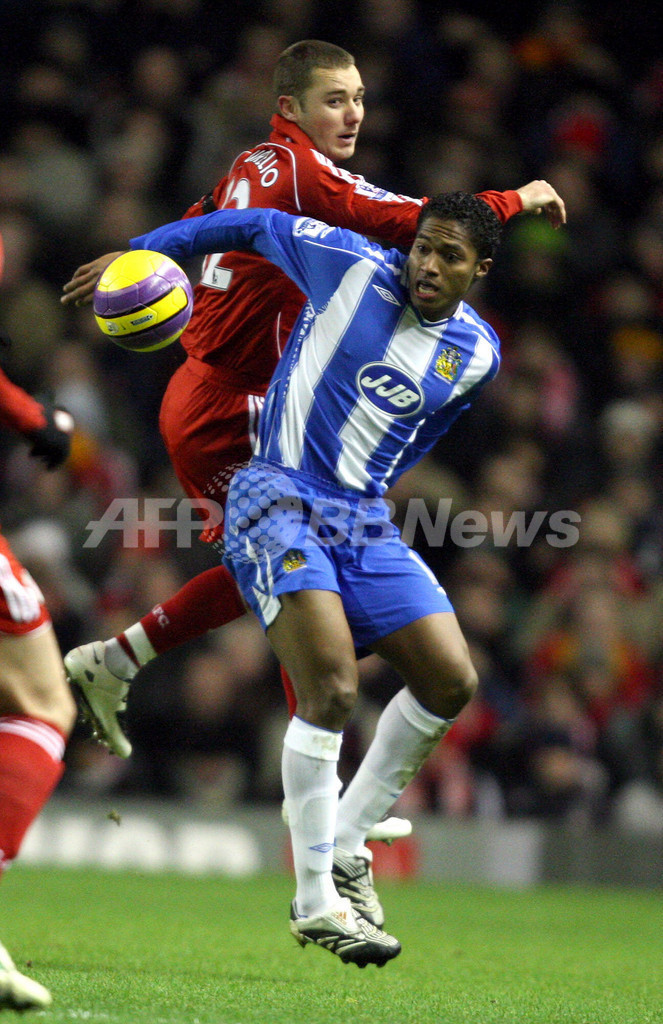 【1月3日 AFP】サッカー、07-08イングランド・プレミアリーグ・第21節、リバプール(Liverpool)vsウィガン(Wigan)。試合は1-1の引き分けに終わり、リバプールは2戦連続のドローで5位に順位を下げた。