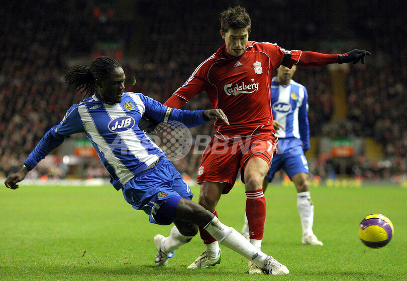 【1月3日 AFP】サッカー、07-08イングランド・プレミアリーグ・第21節、リバプール(Liverpool)vsウィガン(Wigan)。試合は1-1の引き分けに終わり、リバプールは2戦連続のドローで5位に順位を下げた。