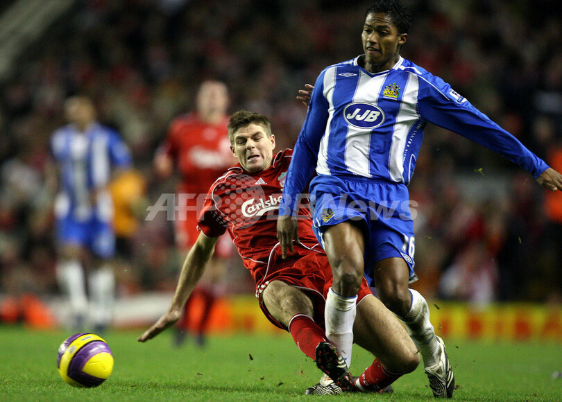 【1月3日 AFP】サッカー、07-08イングランド・プレミアリーグ・第21節、リバプール(Liverpool)vsウィガン(Wigan)。試合は1-1の引き分けに終わり、リバプールは2戦連続のドローで5位に順位を下げた。