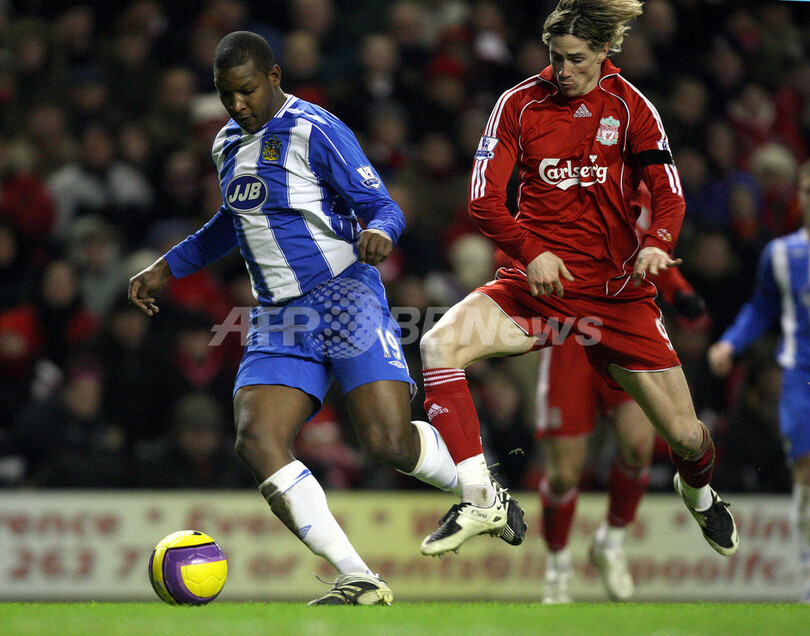 【1月3日 AFP】サッカー、07-08イングランド・プレミアリーグ・第21節、リバプール(Liverpool)vsウィガン(Wigan)。試合は1-1の引き分けに終わり、リバプールは2戦連続のドローで5位に順位を下げた。