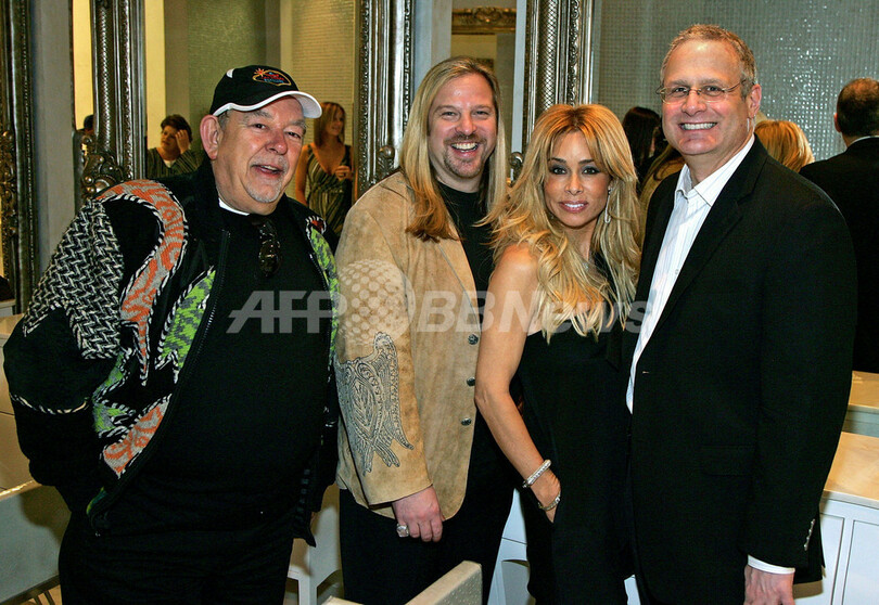 2008年1月1日、ラスベガスのシーザース・パレス(Caesars Palace)で行われたヘアーカラーリスト、Michael Boychuckによるカラーサロン「Color」のオープニングイベントに出席したテレビ番組司会者/作家のロビン・リーチ(%%Robin Leach%%)、Michael Boychuck、デザイナーの%%Faye Resnick%%、シーザース・パレスの%%Gary Selesner%%社長。(c)AFP/Getty Images/Ethan Miller