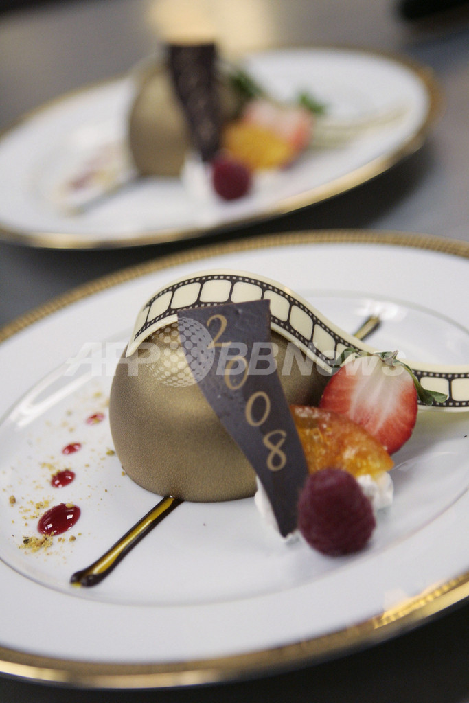 【1月4日 AFP】カリフォルニア州ビバリーヒルズ(Beverly Hills)にあるビバリー・ヒルトン・ホテル(Beverly Hilton Hotel)で3日、13日に開催される第65回ゴールデングローブ賞(The 65th Annual Golden Globe Awards)授賞式に先がけて同ホテル総料理長の「スキ」こと杉浦カツオ(Katsuo Sugiura)氏による当日配膳予定の料理が公開された。(c)AFP/Getty Images