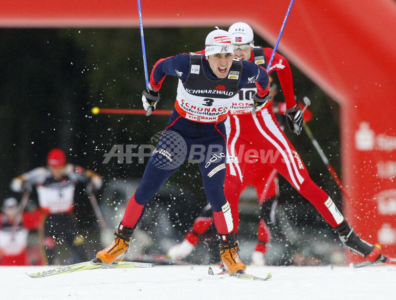 【1月5日 AFP】ノルディックスキー複合W杯2007-08・第8戦、スプリント。前半の飛躍で3位につけ首位から12秒遅れで後半の距離に臨んだフランスのジェイソン・ラミー・シャプイ(Jason Lamy Chappuis)は、17分29秒6でフィニッシュし逆転でシーズン初優勝を飾った。
