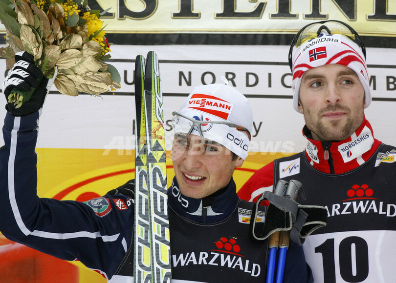 【1月5日 AFP】ノルディックスキー複合W杯2007-08・第8戦、スプリント。前半の飛躍で3位につけ首位から12秒遅れで後半の距離に臨んだフランスのジェイソン・ラミー・シャプイ(Jason Lamy Chappuis)は、17分29秒6でフィニッシュし逆転でシーズン初優勝を飾った。
