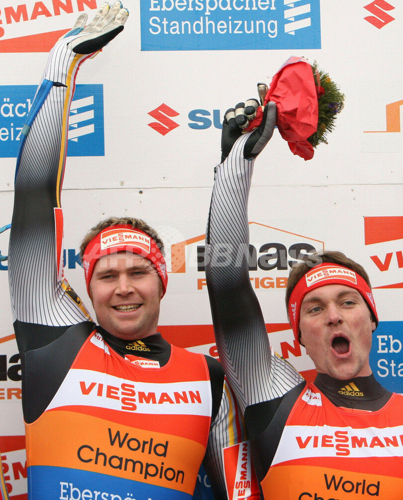 【1月5日 AFP】リュージュW杯2007-08・第5戦、二人乗り。ドイツのパトリック・ライトナー(Patric Leitner)/アレクサンダー・レッシュ(Alexander Resch)組は、2本合計1分33秒890(1本目46秒921、2本目46秒969)を記録して優勝を果たし、シーズン3勝目を挙げた。