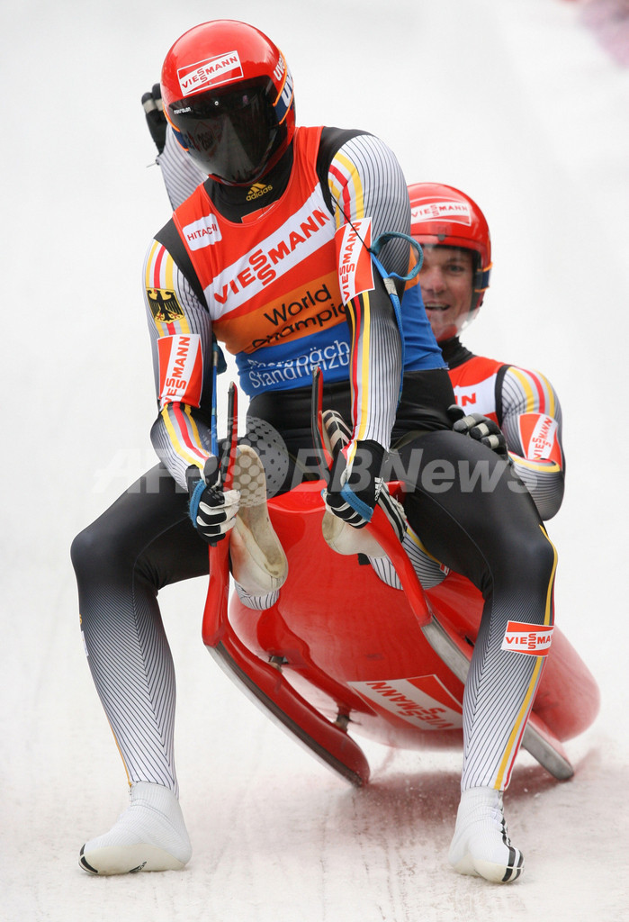 【1月5日 AFP】リュージュW杯2007-08・第5戦、二人乗り。ドイツのパトリック・ライトナー(Patric Leitner)/アレクサンダー・レッシュ(Alexander Resch)組は、2本合計1分33秒890(1本目46秒921、2本目46秒969)を記録して優勝を果たし、シーズン3勝目を挙げた。