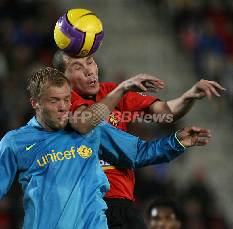 スポーツ サッカー FCバルセロナ アウェーでマジョルカに勝利 2008年1月6日 6:52 発信地:パルマ・デ・マジョルカ/スペイン [ ヨーロッパ スペイン ] このニュースをシェア ‹ › ❮ 11/11 ❯ マジョルカのダビド・ナバッロ(%%David Navarro%%、右)とハイボールを競り合うFCバルセロナのエイドゥル・グジョンセン(%%Eidur Gudjohnsen%%)。(c)AFP/JAIME REINA 画像作成中 ! 【1月6日 AFP】サッカー、07-08スペイン・リーガエスパニョーラ1部・第18節、マジョルカ(RCD Mallorca)vsFCバルセロナ(FC Barcelona)。試合はFCバルセロナが2-0でマジョルカを降した。(c)AFP サッカー 一覧へ> メディア・報道関係・法人の方向け 写真・動画 購入のお問合せ>