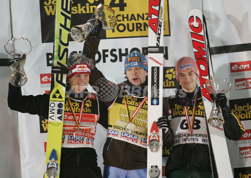【1月7日 AFP】スキージャンプW杯2007-08・第12戦(ジャンプ週間(Vierschanzentournee)最終第4戦)、ラージヒル個人。フィンランドのヤンネ・アホネン(Janne Ahonen)は、1本目に126.0メートル、2本目に136.0メートルを記録し、合計251.6点を獲得して2連勝を飾った。また、アホネンはジャンプ週間の4戦で合計1085.8点を獲得して歴代最多となる通算5度目の総合優勝に輝いた。