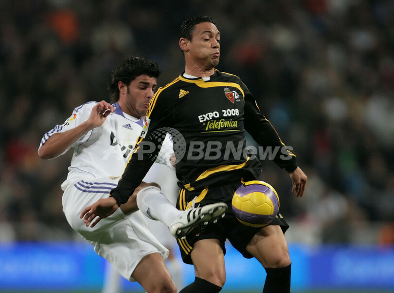 スポーツ サッカー レアル・マドリード ホームでサラゴサを破り5連勝 2008年1月7日 6:02 発信地:マドリード/スペイン [ ヨーロッパ スペイン ] このニュースをシェア ‹ › ❮ 11/11 ❯ サラゴサのリカルド・オリベイラ(%%Ricardo Oliveira%%、右)にプレスをかけるレアル・マドリードのミゲル・トレス(%%Miguel Torres%%)。(c)AFP/PIERRE-PHILIPPE MARCOU 画像作成中 ! 【1月7日 AFP】サッカー、07-08スペイン・リーガエスパニョーラ1部・第18節、レアル・マドリード(Real Madrid)vsサラゴサ(Zaragoza)。試合はレアル・マドリードが2-0で勝利を収め、5連勝を飾り首位をキープした。(c)AFP サッカー 一覧へ> メディア・報道関係・法人の方向け 写真・動画 購入のお問合せ>