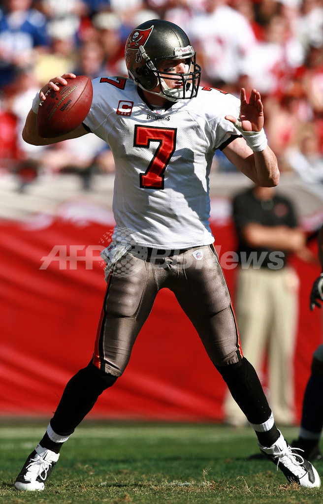 【1月7日 AFP】(写真追加)07NFLプレーオフNFC1回戦、タンパベイ・バッカニアーズ(Tampa Bay Buccaneers)vsニューヨーク・ジャイアンツ(New York Giants)。試合はイーライ・マニング(Eli Manning)が3度のタッチダウンを演出し、ジャイアンツが24-14でバッカニアーズを降し準決勝進出を決めた。ジャイアンツは現地13日に行われるNFC準決勝でダラス・カウボーイズ(Dallas Cowboys)と対戦する。