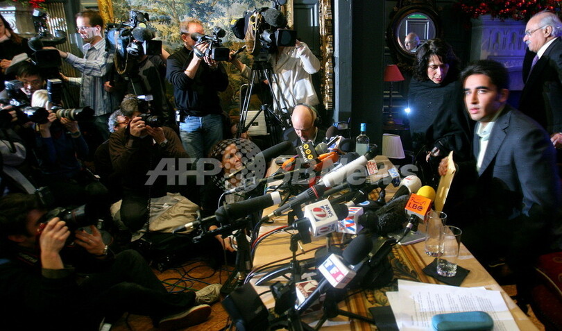 【1月9日 AFP】(1月9日 一部更新、写真追加)暗殺されたパキスタンのベナジル・ブット(Benazir Bhutto)元首相の長男で、野党パキスタン人民党(Pakistan People's Party、PPP)の新総裁となったビラワル・ブット・ザルダリ(Bilawal Bhutto Zardari)氏が8日、単独では総裁就任後初めてとなる記者会見を英ロンドンで行った。