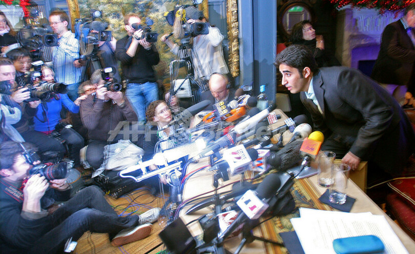 【1月9日 AFP】(1月9日 一部更新、写真追加)暗殺されたパキスタンのベナジル・ブット(Benazir Bhutto)元首相の長男で、野党パキスタン人民党(Pakistan People's Party、PPP)の新総裁となったビラワル・ブット・ザルダリ(Bilawal Bhutto Zardari)氏が8日、単独では総裁就任後初めてとなる記者会見を英ロンドンで行った。